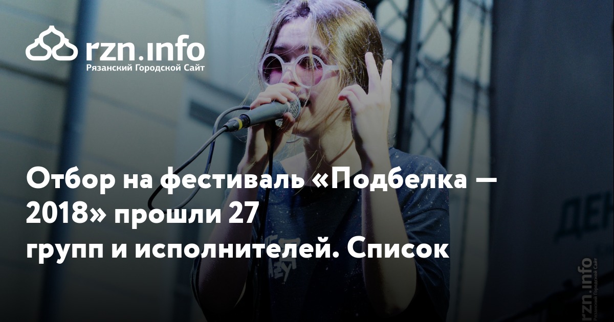 Отбор на «Подбелку — 2018» прошли 27 групп и исполнителей. Среди дебютантов фестиваля — известные в Рязани John Lemon, «Светящиеся Барабанщики», Алексей Серафимов, а также талантливые молодые музыканты — Esenin Street, Дмитрий Устинов, «Андуин», Coff и Sloman.