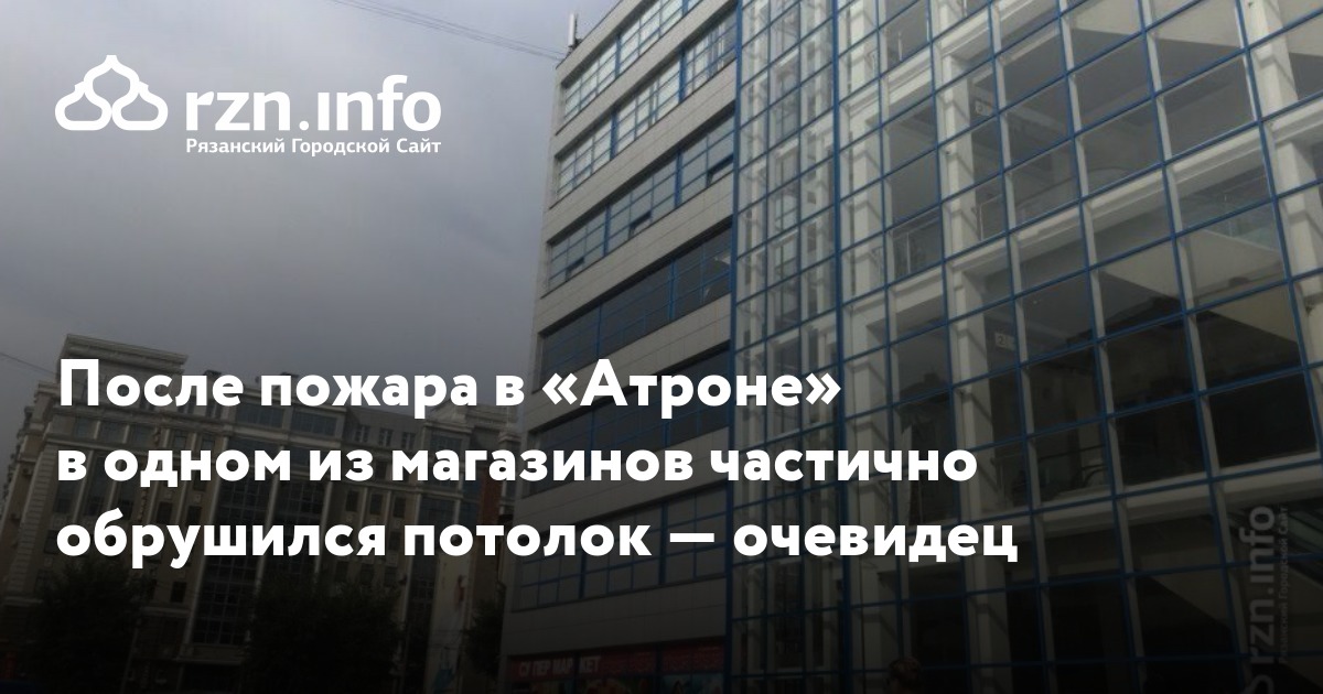 После пожара в ТЦ «Атрон» в детском магазине «Кораблик» частично обрушился потолок. Об этом RZN.info сообщил один из арендаторов торгового центра.