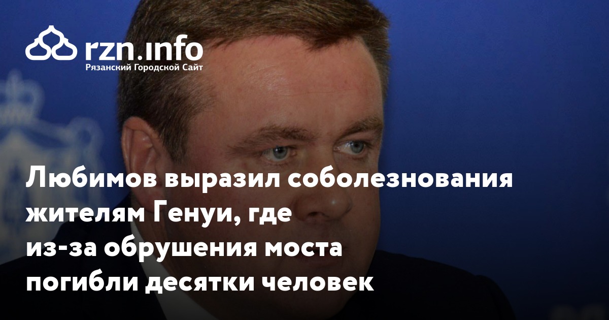 Губернатор Рязанской области Николай Любимов выразил соболезнования жителям итальянской Генуи, где из-за обрушения моста погибли десятки человек.