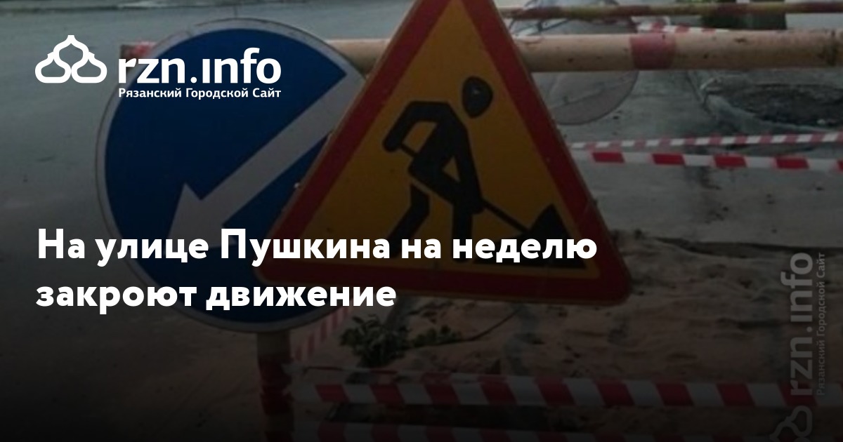 На улице Пушкина на неделю закроют движение. Из-за капремонта теплотрассы проехать будет нельзя с 08:00 3 августа до 24:00 9 августа, сайт администрации Рязани.
