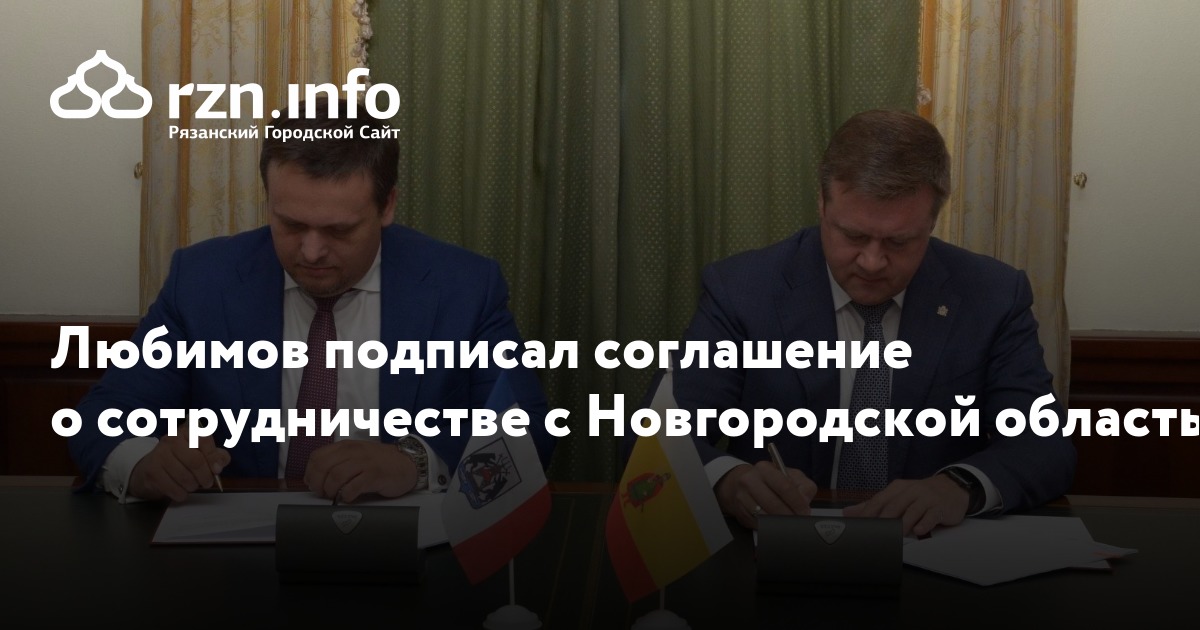 Николай Любимов подписал соглашение о сотрудничестве с Новгородской областью. Об этом сообщил правительства Рязанской области.