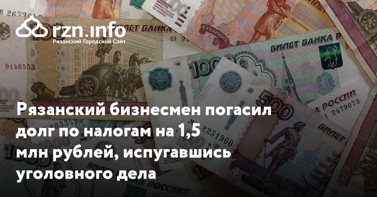 Рязанский бизнесмен погасил долг по налогам на 1,5 млн рублей, испугавшись уголовного дела. Об этом сообщило по региону.