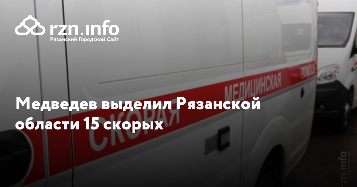 Дмитрий Медведев выделил Рязанской области 15 автомобилей скорой помощи. Распоряжение опубликовано на правительства России.