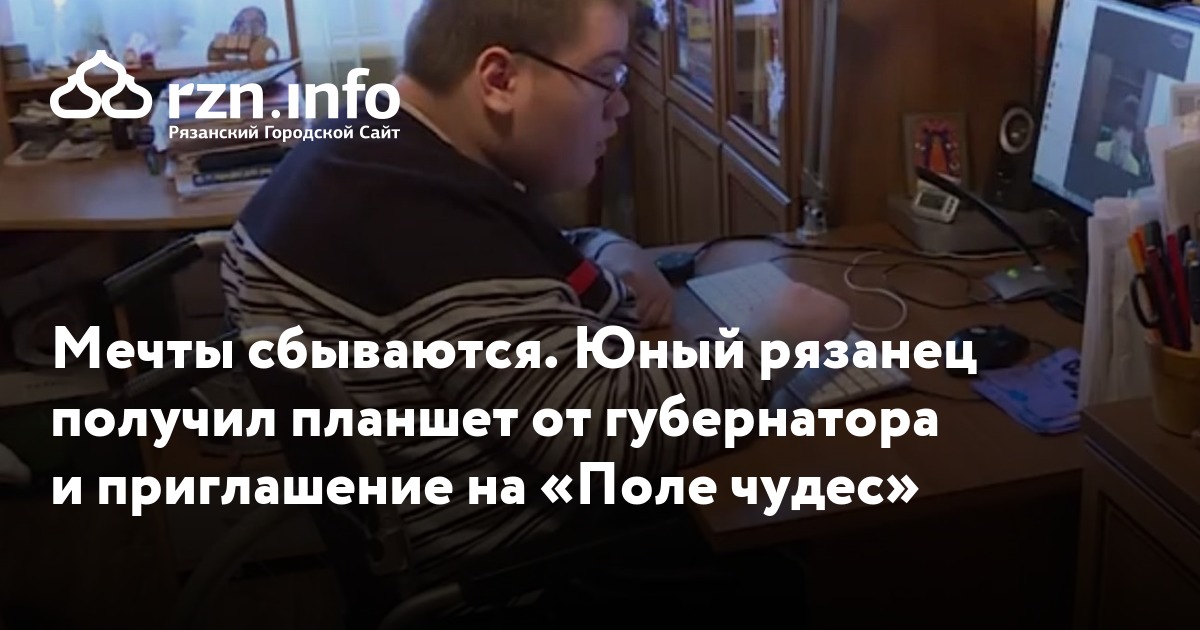 Мечты сбываются. Юный рязанец получил планшет от губернатора и приглашение на «Поле чудес»