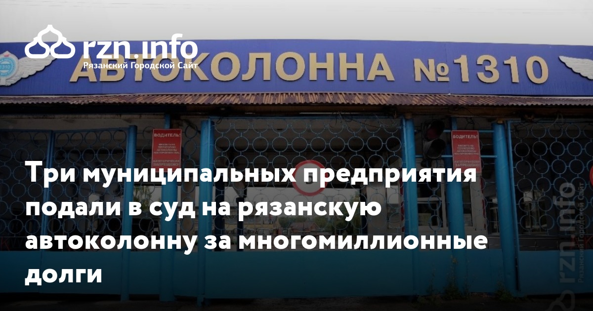 Три муниципальных предприятия подали в суд на рязанскую автоколонну за многомиллионные долги. Об этом сообщает сайт Арбитражного суда.