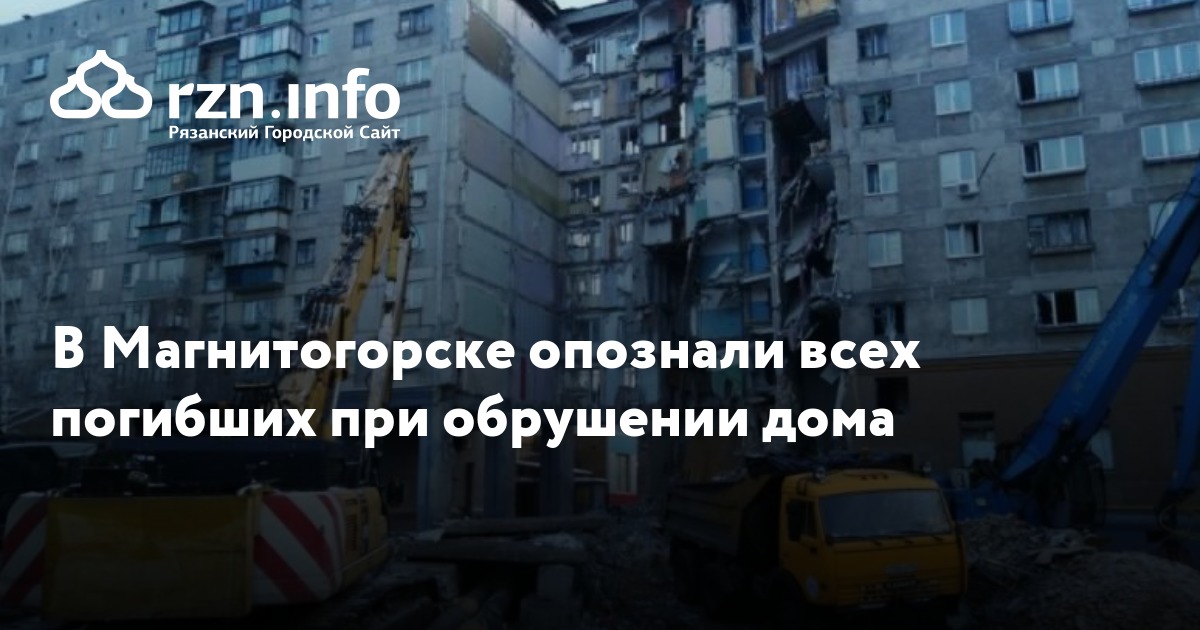 В Магнитогорске опознали всех погибших при обрушении дома. Об этом в пятницу, 4 января, сообщил первый заместитель главы МЧС России Александр Чуприян, передает РИА «Новости».