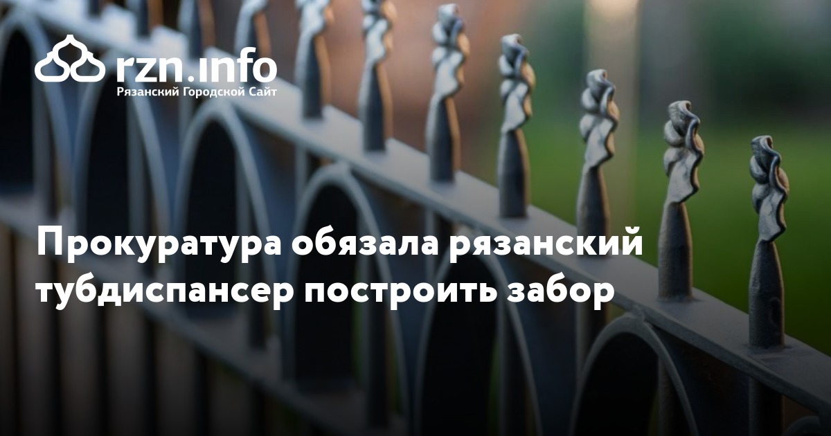 Прокуратура обязала рязанский тубдиспансер построить забор. Об этом сообщил облпрокуратуры.