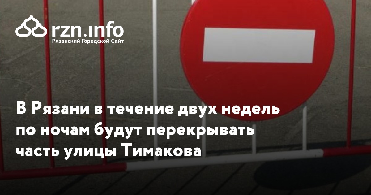 В Рязани в течение двух недель по ночам будут перекрывать часть улицы Тимакова