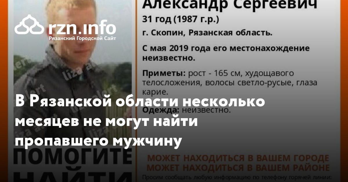 В Скопине Рязанской области пропал 31-летний Александр Сватов. Об этом сообщила группа поисково-спасательного отряда «».