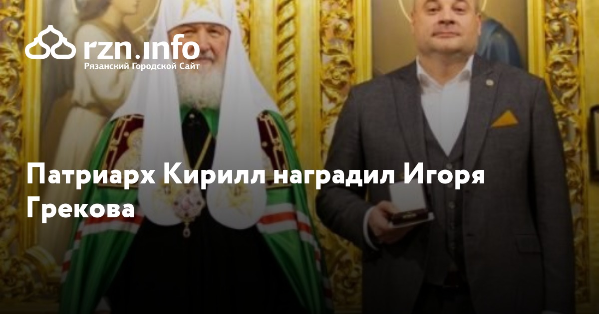 В числе награжденных — вице-губернатор Рязанской области Игорь Греков. Кирилл вручил ему Патриарший знак храмостроителя.