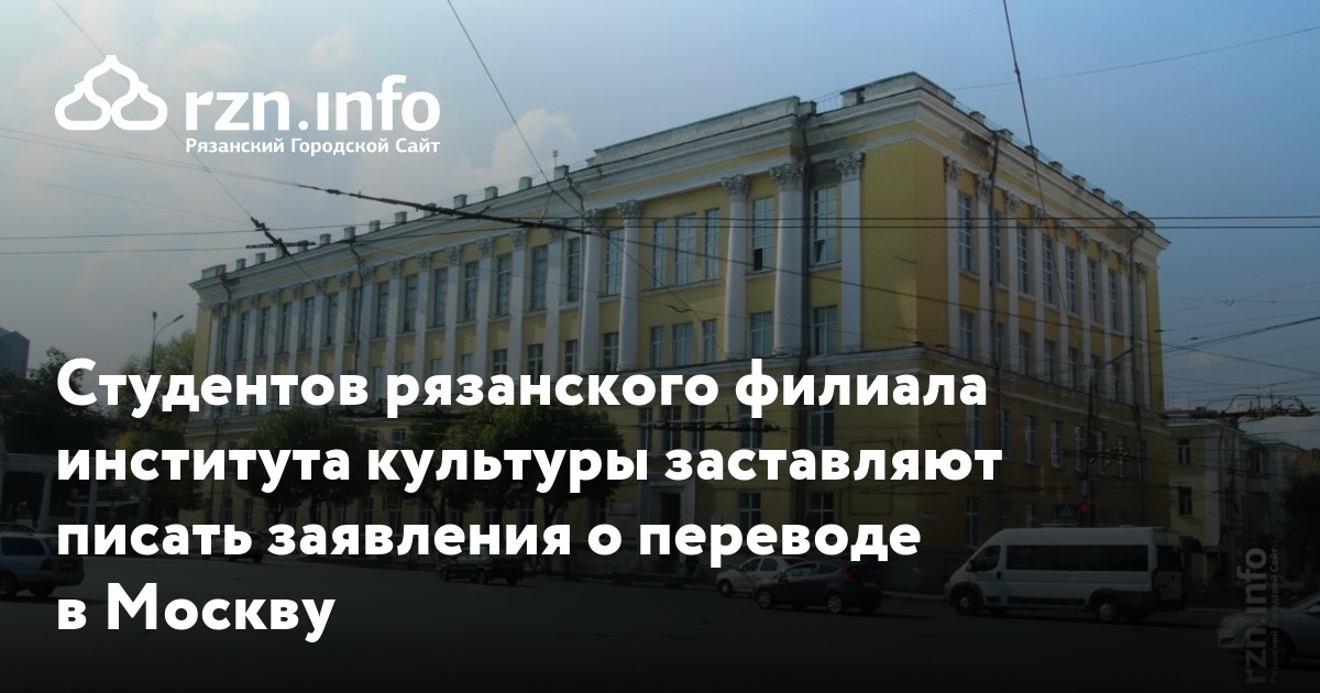 Без письменного заявления о переводе в Москву студенты рязанского филиала института культуры могут остаться без образования. Об этом сообщили представители головного вуза на встрече с учащимися.