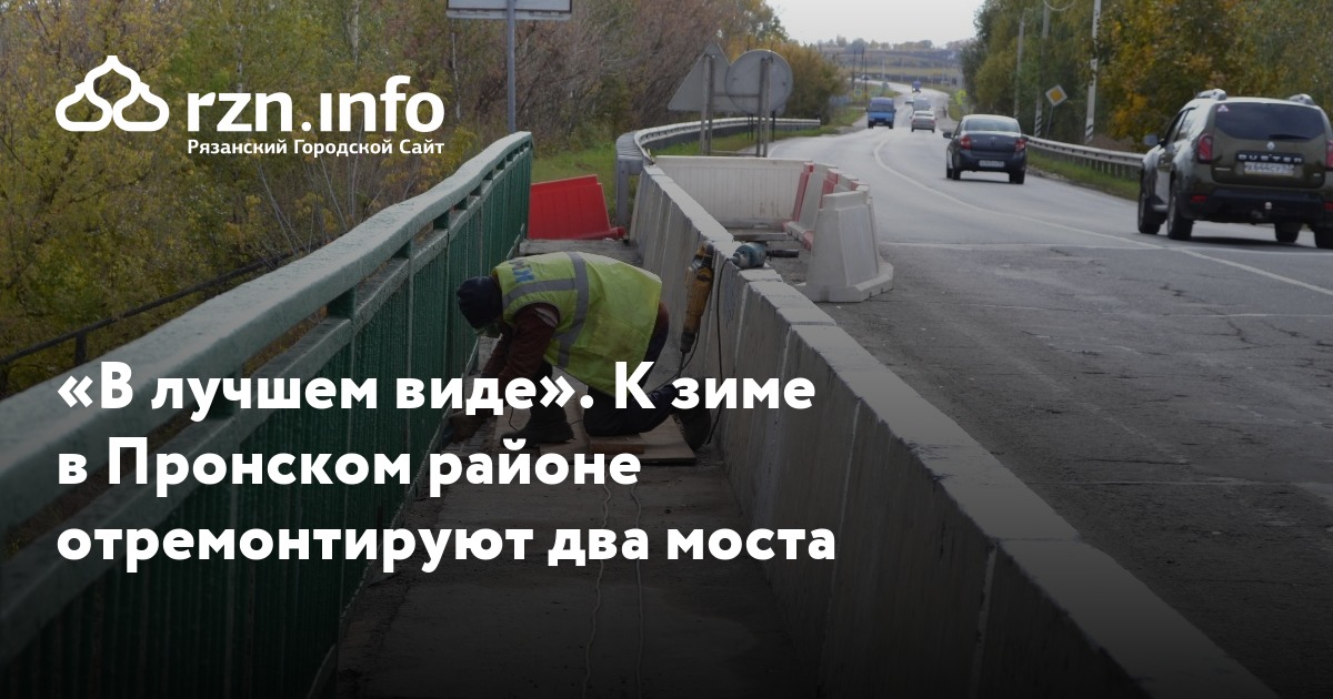 К началу зимы в Пронском районе отремонтируют два моста. Об этом издательству «» рассказал руководитель рабочей группы Сергей Светличный.