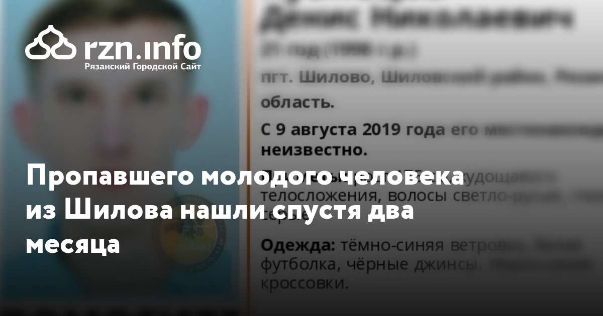 Спустя два месяца нашли 21-летнего Дениса Кузнецова из Шилова, который пропал два месяца назад. Он жив, сообщили в поисково-спасательном отряде «».