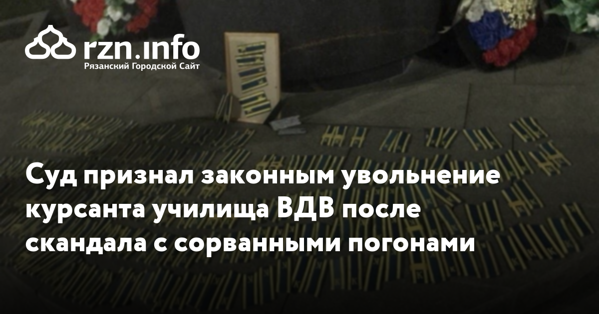Рязанский гарнизонный военный суд отказался признать незаконным увольнение из воздушно-десантного училища курсанта Владимира Головина. Он был одним из участников акции с демонстративным снятием погон, которые положили к памятнику генералу армии Василию Маргелову курсанты в знак протеста, пишет «».