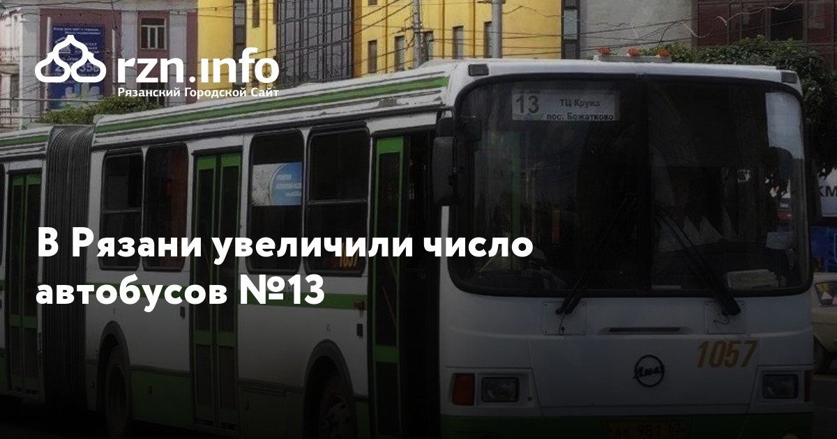 Со вторника, 8 октября, в Рязани увеличат число автобусов на маршруте №13 до восьми единиц. Об этом сообщил сайт горадминистрации.
