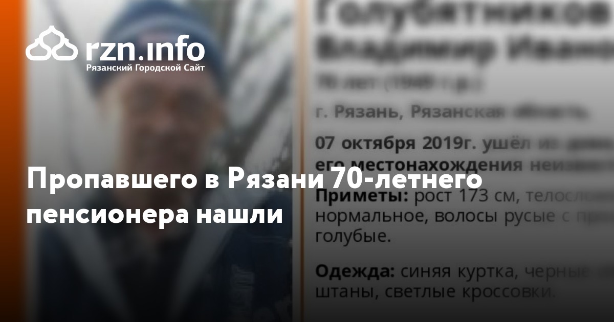 Пропавшего в Рязани 70-летнего Владимира Голубятникова нашли живым. Об этом сообщили поисково-спасательного отряда «Лиза Алерт Рязань».