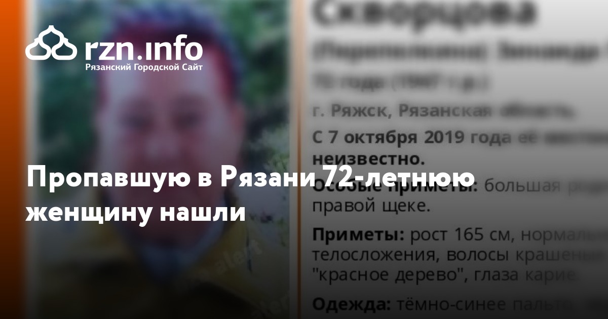 Пропавшую в Рязани 72-летнюю Зинаиду Скворцову нашли живой. Об этом сообщили в группе ПСО «Лиза Алерт».