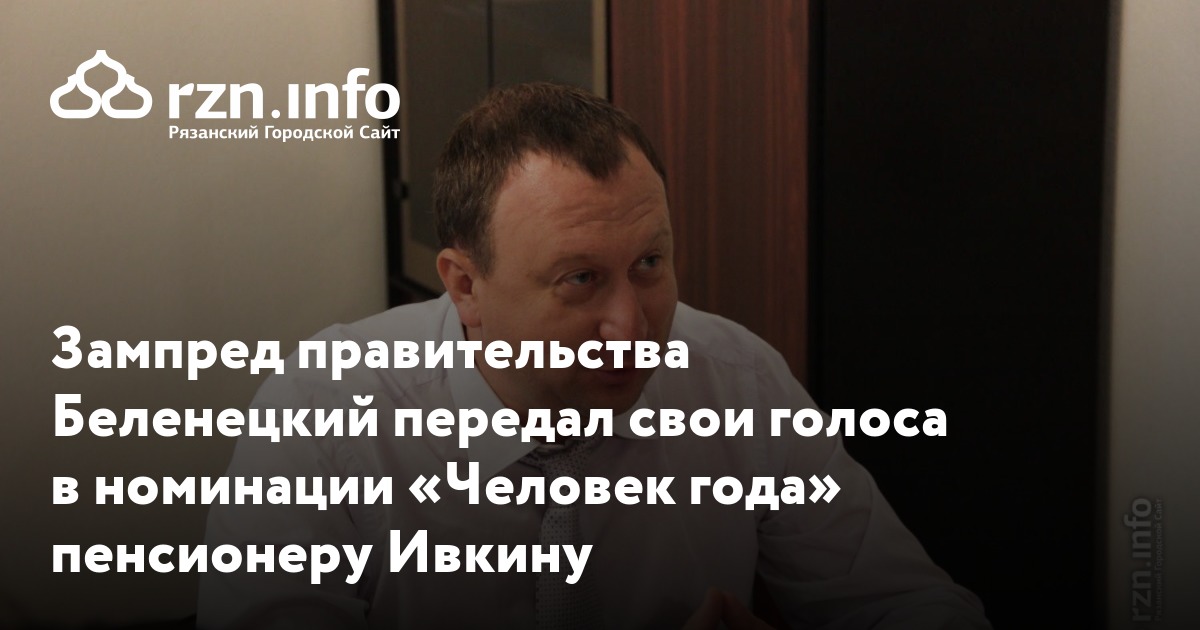 Зампред правительства Евгений Беленецкий передал свои голоса в номинации RZN.info «Человек года 2019» пенсионеру Владимиру Ивкину. Об этом он сообщил редакции.