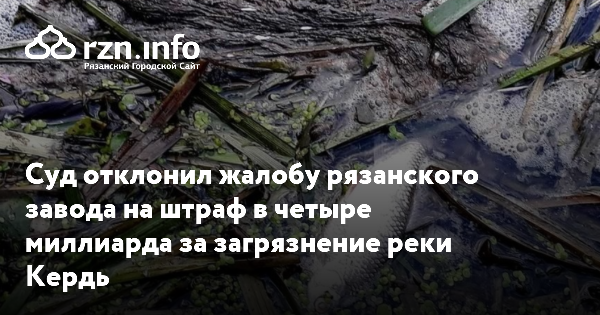 Суд отклонил жалобу рязанского завода на штраф в четыре миллиарда за загрязнение реки Кердь. Об этом говорится на сайте Арбитражного суда.