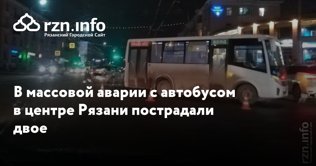 В массовой аварии с автобусом в центре Рязани пострадали двое