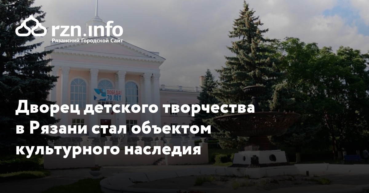 Дворец детского творчества в Рязани стал объектом культурного наследия