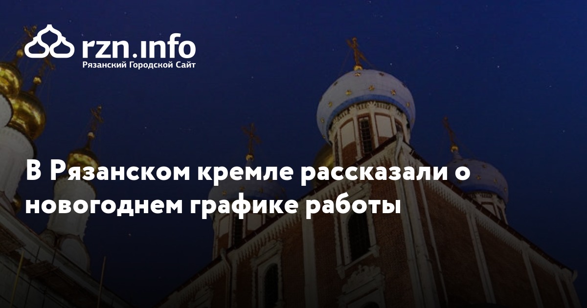 В Рязанском кремле рассказали о новогоднем графике работы. Выходные в музее-заповеднике будут 30 декабря и 1 января, его сайт.