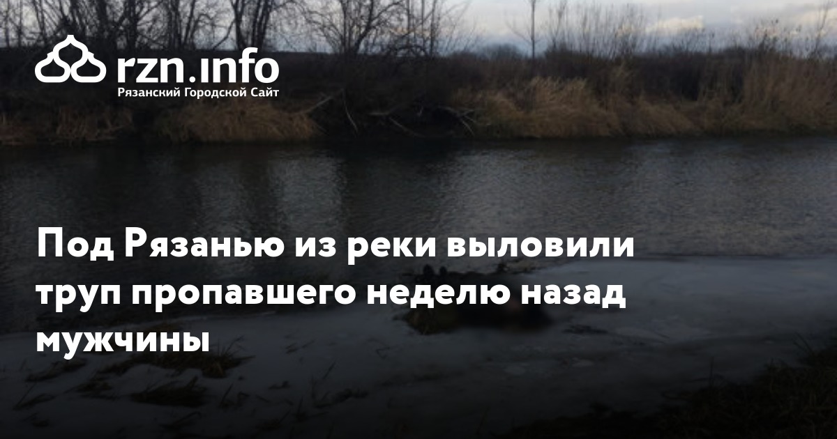 В Рыбновском районе из реки выловили труп мужчины, который пропал неделю назад. Об этом пишет «» со ссылкой на старшего следователя Рязанского МСО СУ СКР по области Ирину Корнееву.