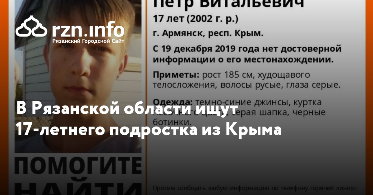 В Рязанской области ищут 17-летнего Петра Микова из города Армянск республики Крым. Об этом сообщила группа поисково-спасательного отряда «» «ВКонтакте».