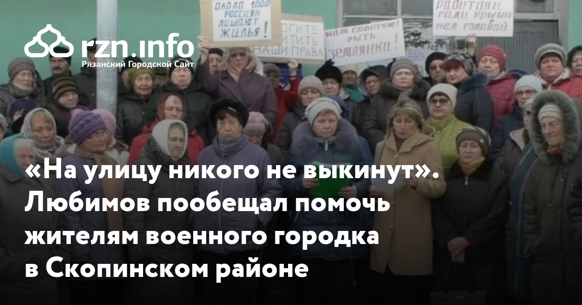 Губернатор Николай Любимов пообещал помочь жителям военного городка в Скопинском районе. На пресс-конференции в понедельник, 23 декабря, он отметил, что регион готов вложить «безумные деньги» на благоустройство жилья и инфраструктуры для скопинцев в поселке Желтухинский.