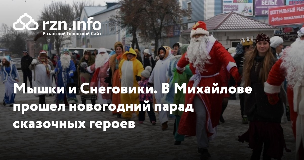 В субботу, 28 декабря, в Михайлове прошел новогодний парад сказочных героев. По центральной площади города прошли Деды Морозы и Снегурочки, Снеговики, Мышки и Зайчики, Золушка и другие сказочные герои, пишет издательство «».