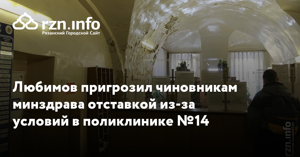 Николай Любимов пригрозил чиновникам минздрава отставкой из-за условий в поликлинике №14. Рязанский губернатор обратился с посланием в среду, 27 февраля.
