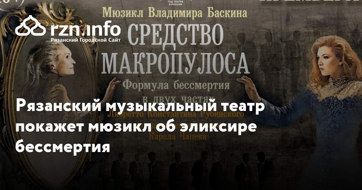 Рязанский музыкальный театр готовит новую постановку — мюзикл «Средство Макропулоса». В спектакле принимают участие ведущие солисты театра, хор и балет. Мюзикл создан петербургским композитором Владимиром Баскиным на основе одноименной пьесы чешского драматурга Карела Чапека. Главную роль — очаровательной Элины Макропулос (она же Эмилия Марти), заполучившей рецепт бессмертия, исполнила солистка театра Ирина Маненкова.