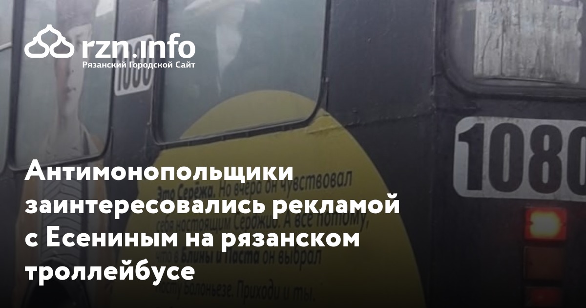Рязанское управление ФАС заинтересовалось рекламой на рязанском троллейбусе, где изображен Сергей Есенин.