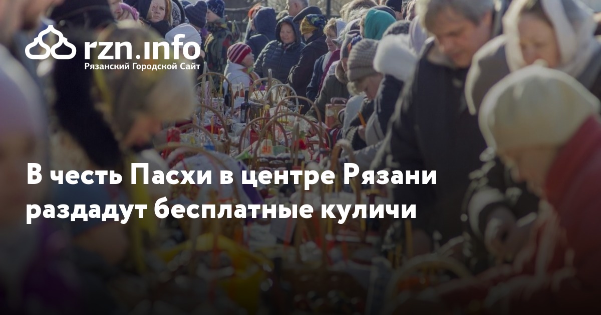 В воскресенье, 28 апреля, в честь Пасхи в центре Рязани раздадут бесплатные куличи. Об этом сообщила рязанской Епархии.