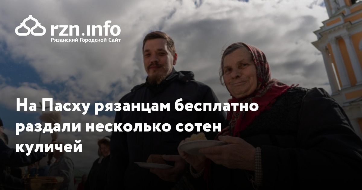 На Пасху рязанцам бесплатно раздали несколько сотен куличей. Горожан угощали перед Успенским кафедральным собором в воскресенье, 28 апреля, сообщили в епархии.