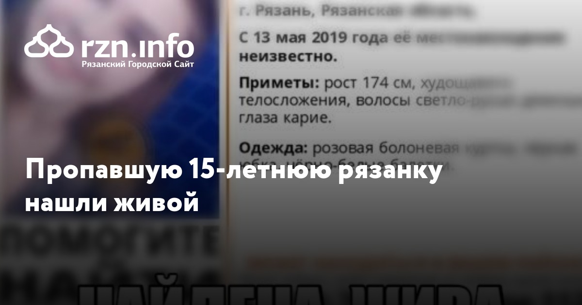 Пропавшую 15-летнюю рязанку нашли живой. Об этом в воскресенье, 19 мая, сообщили в группе «».