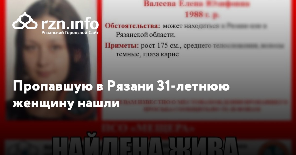 Елену Валееву, которая пропала в Рязани, нашли живой. Об этом в среду, 22 мая, сообщили в поисково-спасательном отряде «».