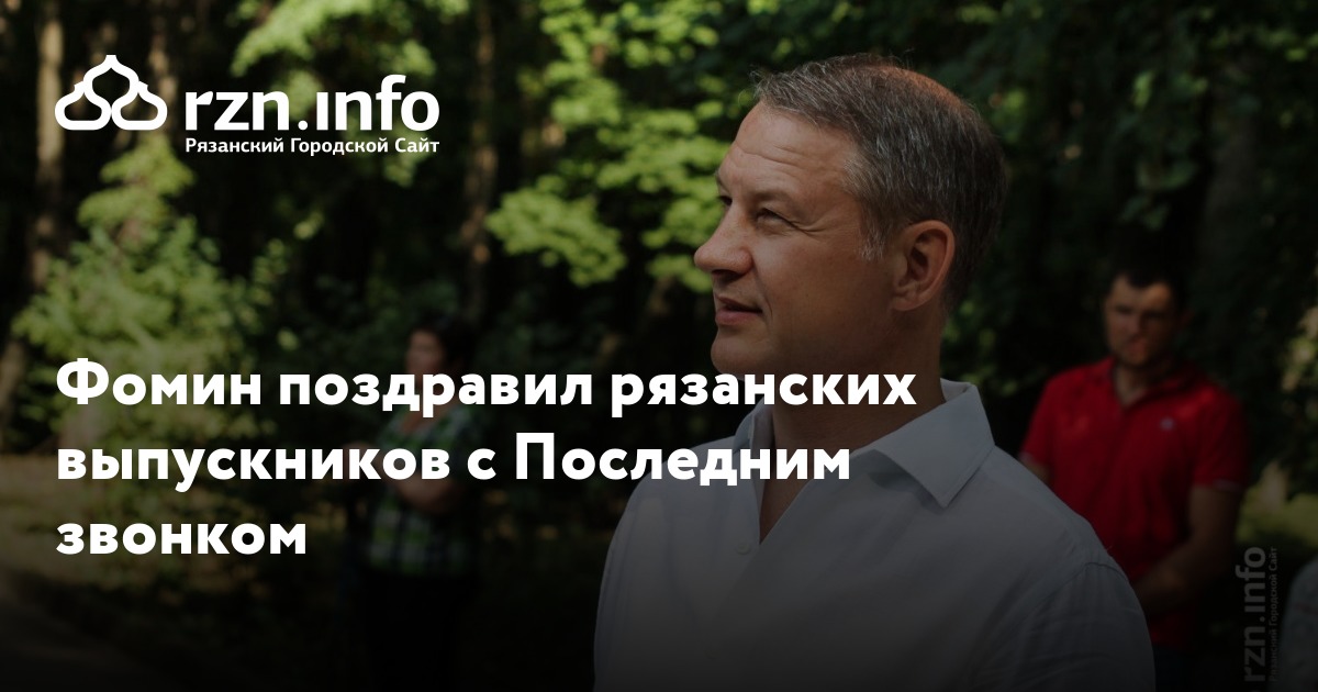 В четверг, 23 мая, Аркадий Фомин поздравил рязанских выпускников с Последним звонком. Председатель облдумы пожелал им быть уверенными в себе, преодолевать трудности, не бояться мечтать и активно проявлять свои таланты.