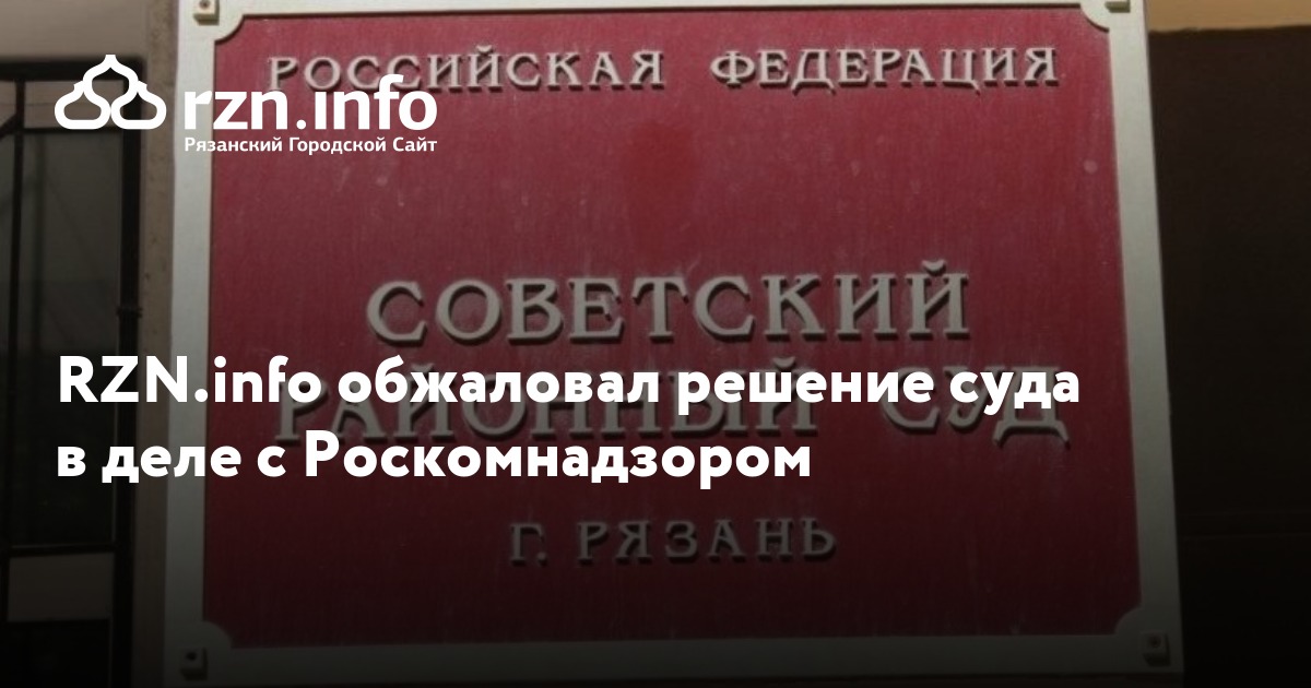 RZN.info обжаловал решение суда в деле с Роскомнадзором. В пятницу, 24 мая, апелляцию редакции начал рассматривать Советский районный суд Рязани.