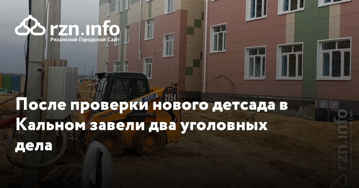 После проверки нового детсада в Кальном завели два уголовных дела. Ответственных за его строительство подозревают в халатности (статье 293 УК) и мошенничестве в крупном размере (часть 4 статьи 159 УК). Об этом сообщила пресс-служба прокуратуры Рязанской области.