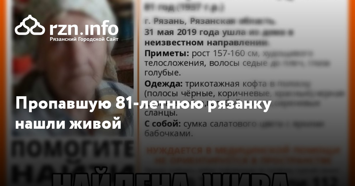 Пропавшую 81-летнюю рязанку нашли живой. Об этом сообщили в группе «».