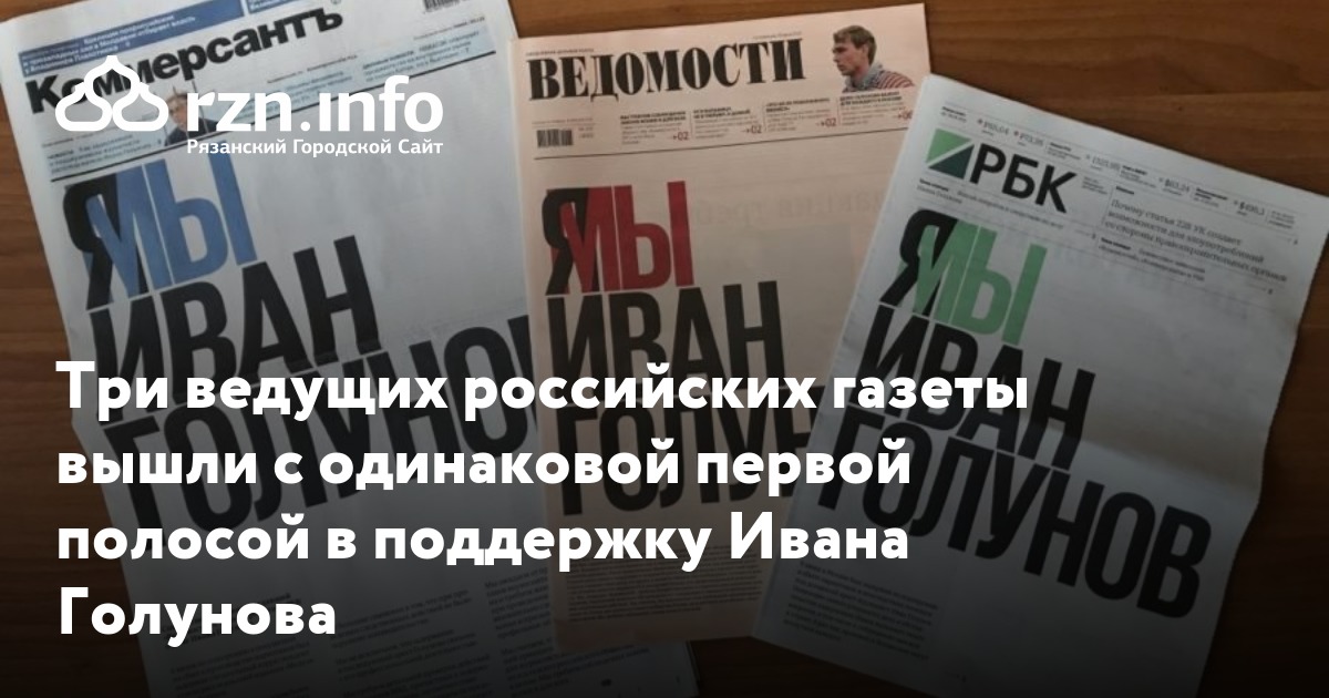В понедельник, 10 июня, три ведущих российских издания впервые в истории вышли с одинаковой первой. На главном анонсе изданий разместят надпись «Я-мы Иван Голунов». Об этом сообщила Meduza.