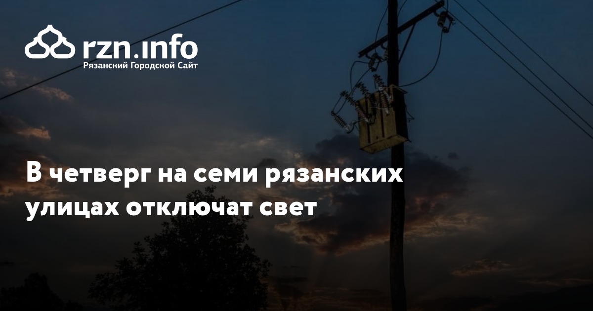 В четверг, 13 июня, на семи рязанских улицах отключат свет. Об этом сообщила горадминистрации.