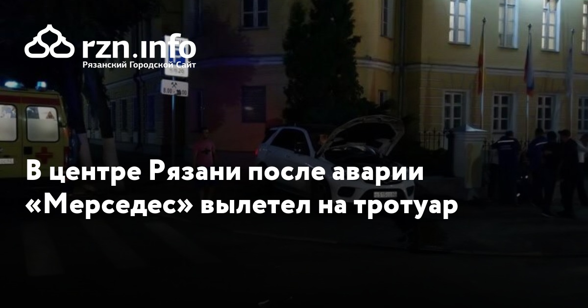 В центре Рязани после аварии Mercedes вылетел на тротуар. ДТП произошло поздно вечером в субботу, 15 июня, сообщили в группе «».
