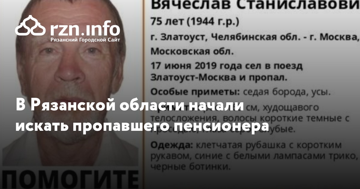В Рязанской области начали искать 75-летнего Вячеслава Залогу. Мужчина сел в поезд Златоуст-Москва и пропал. Сведений о нем нет с 17 июня, сообщили в поисково-спасательном отряде «».
