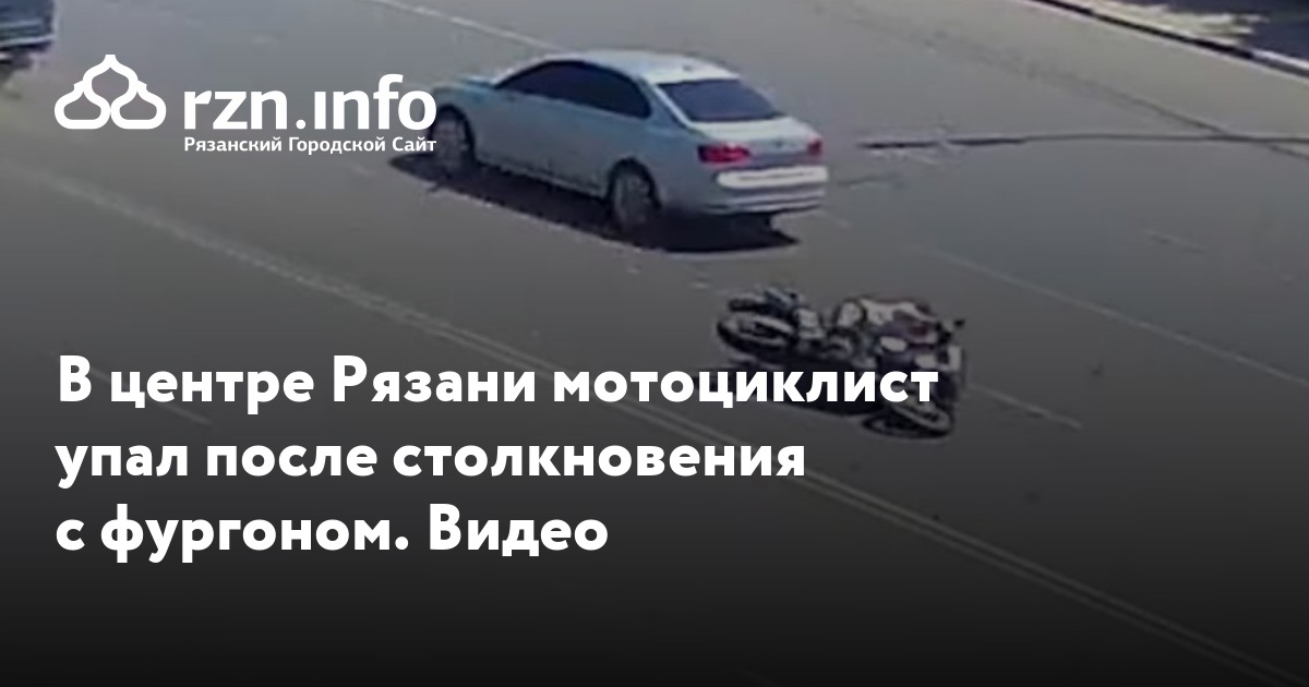 В центре Рязани мотоциклист упал после столкновения с фургоном. Видео