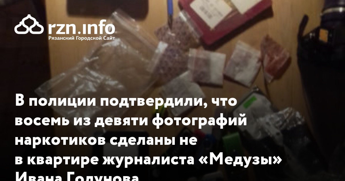 В полиции подтвердили, что восемь из девяти фотографий наркотиков сделаны не в квартире журналиста «Медузы» Ивана Голунова. Об этом написал УМВД города Москвы.