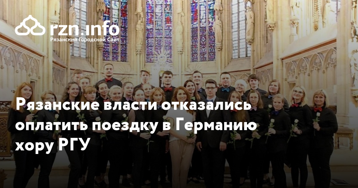 В бюджетах города, области и РГУ не нашлось средств на билеты рязанским хористам в Мюнстер. Власти немецкого города-побратима официально пригласили хор РГУ на 30-летие партнерских отношений между Рязанью и Мюнстером. Несмотря на это, помощи от рязанских властей не последовало, и коллективу пришлось оплачивать авиабилеты самостоятельно.