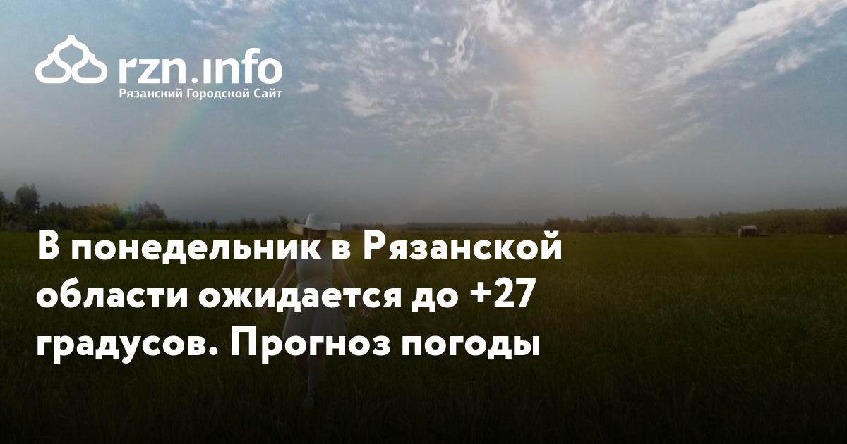 В понедельник в Рязанской области ожидается до +27 градусов. Прогноз погоды