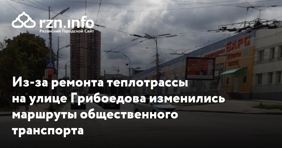 Из-за ремонта теплотрассы на улице Грибоедова изменились маршруты общественного транспорта. Об этом сообщил администрации Рязани.